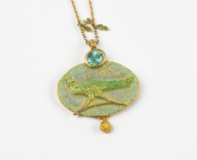21 KARAT GOLD - PARAIBATURMALIN - OPALISIERENDES EMAIL