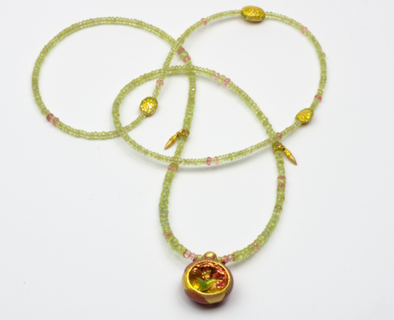 21 KARAT GOLD - OPALISIERENDES EMAIL - CHRYSOBERYLL KATZENAUGE