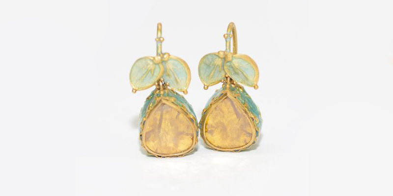 21 KARAT GOLD - DIAMANTTROPFEN - OPALISIERENDES EMAIL