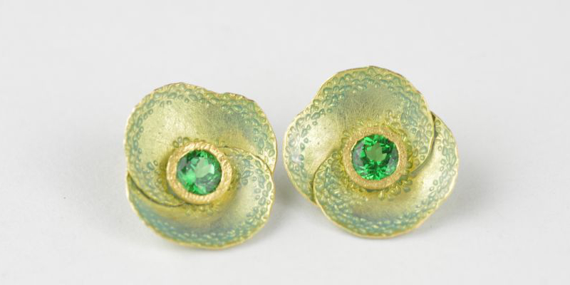 21 KARAT GOLD - TSAVORIT - OPALISIERENDES EMAIL